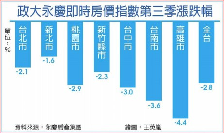 全台房價Q3跌幅擴大 台北市跌2.1% 高雄最重